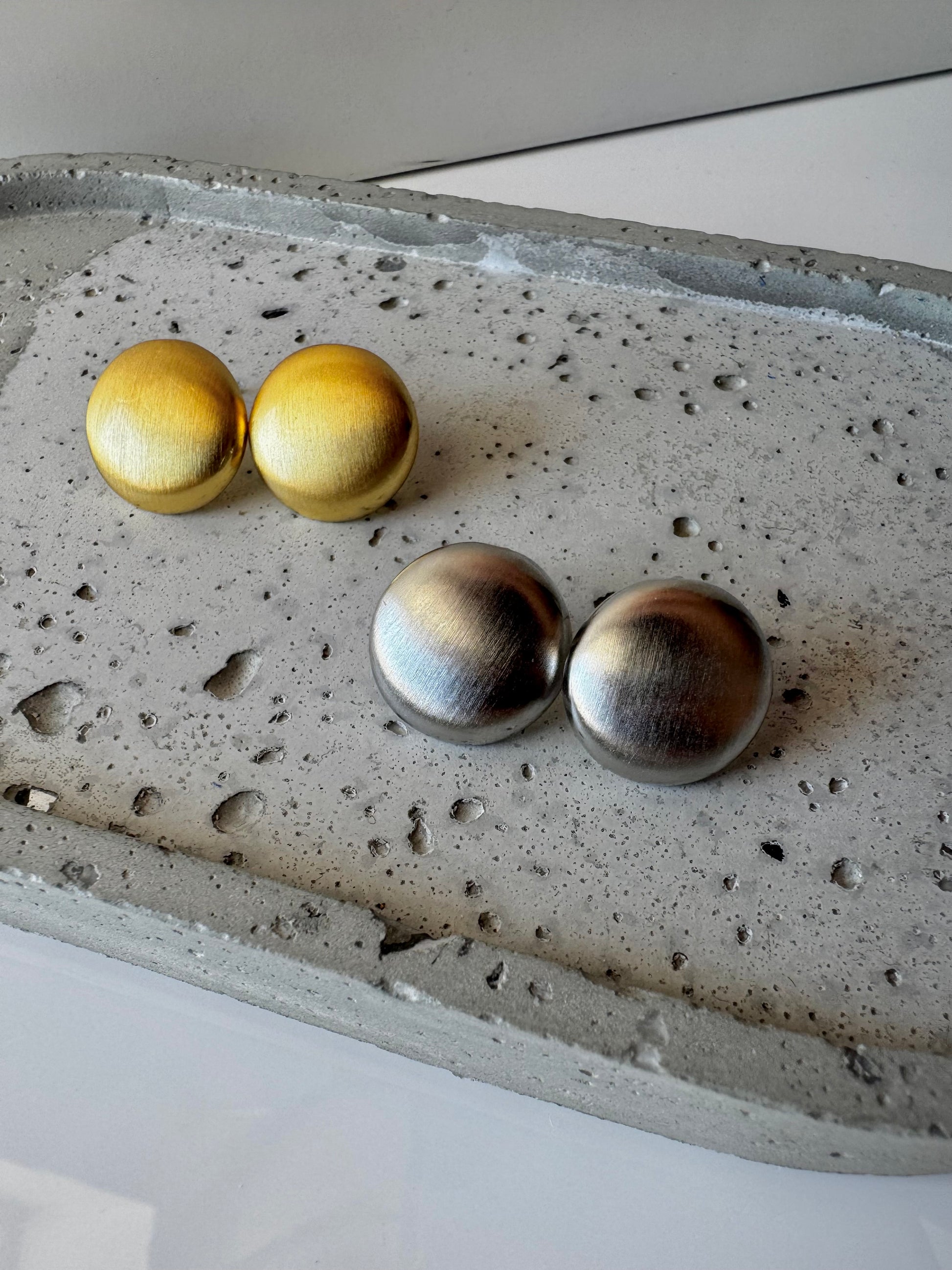Ματ, καμπυλωτά σκουλαρίκια-κουμπιά με ανάγλυφη υφή. Ένα μοντέρνο “twist” στο κλασικό stud.
