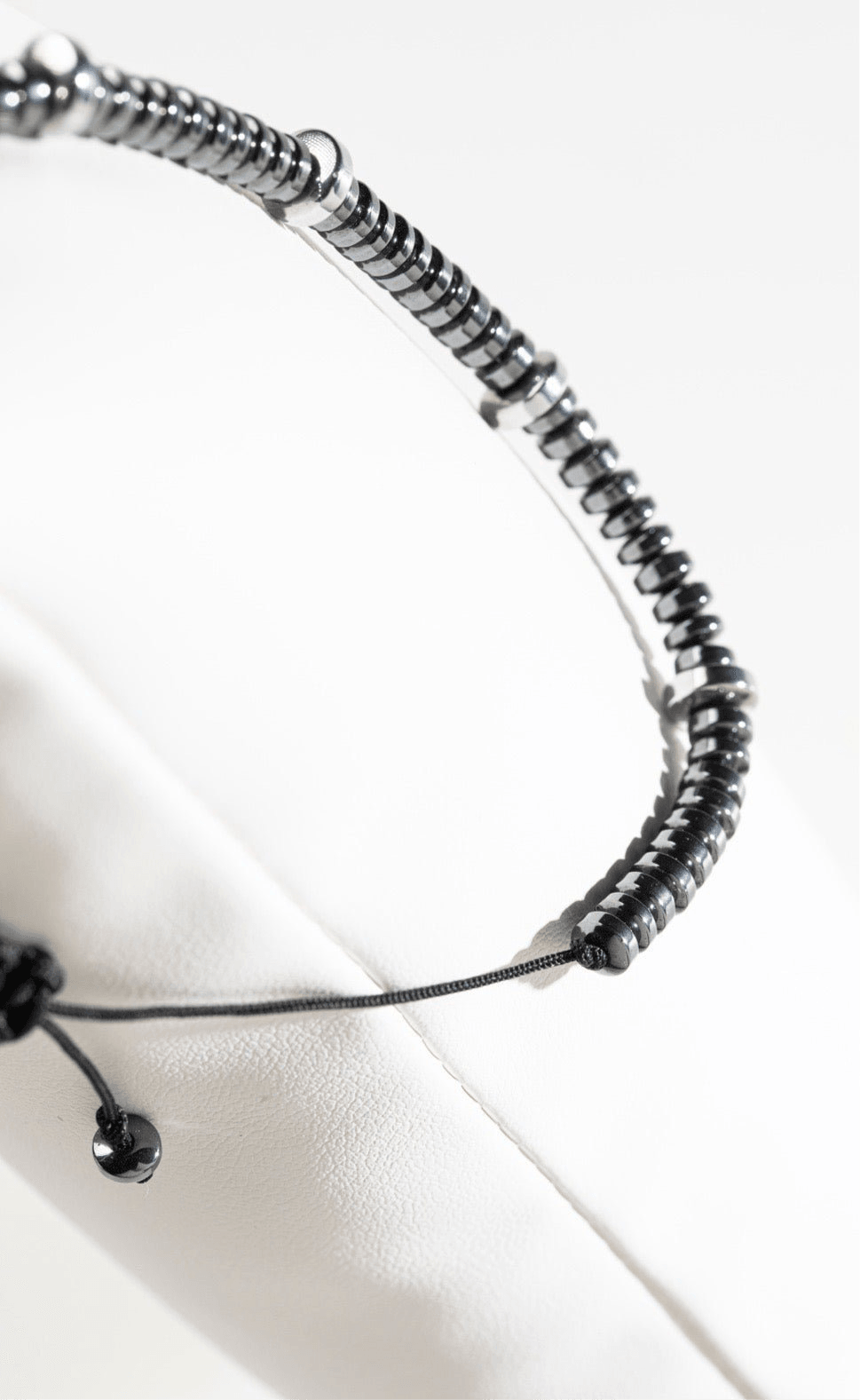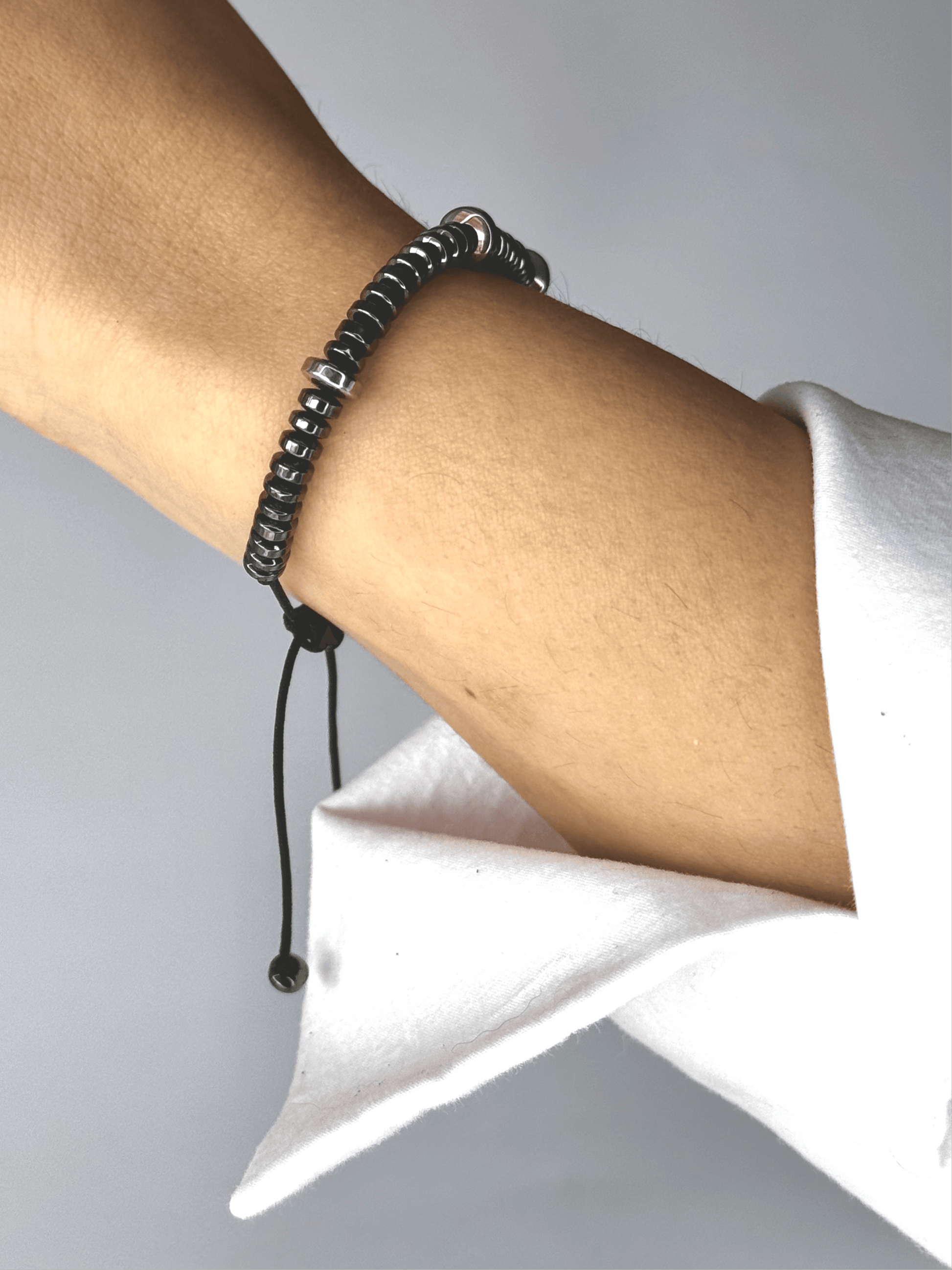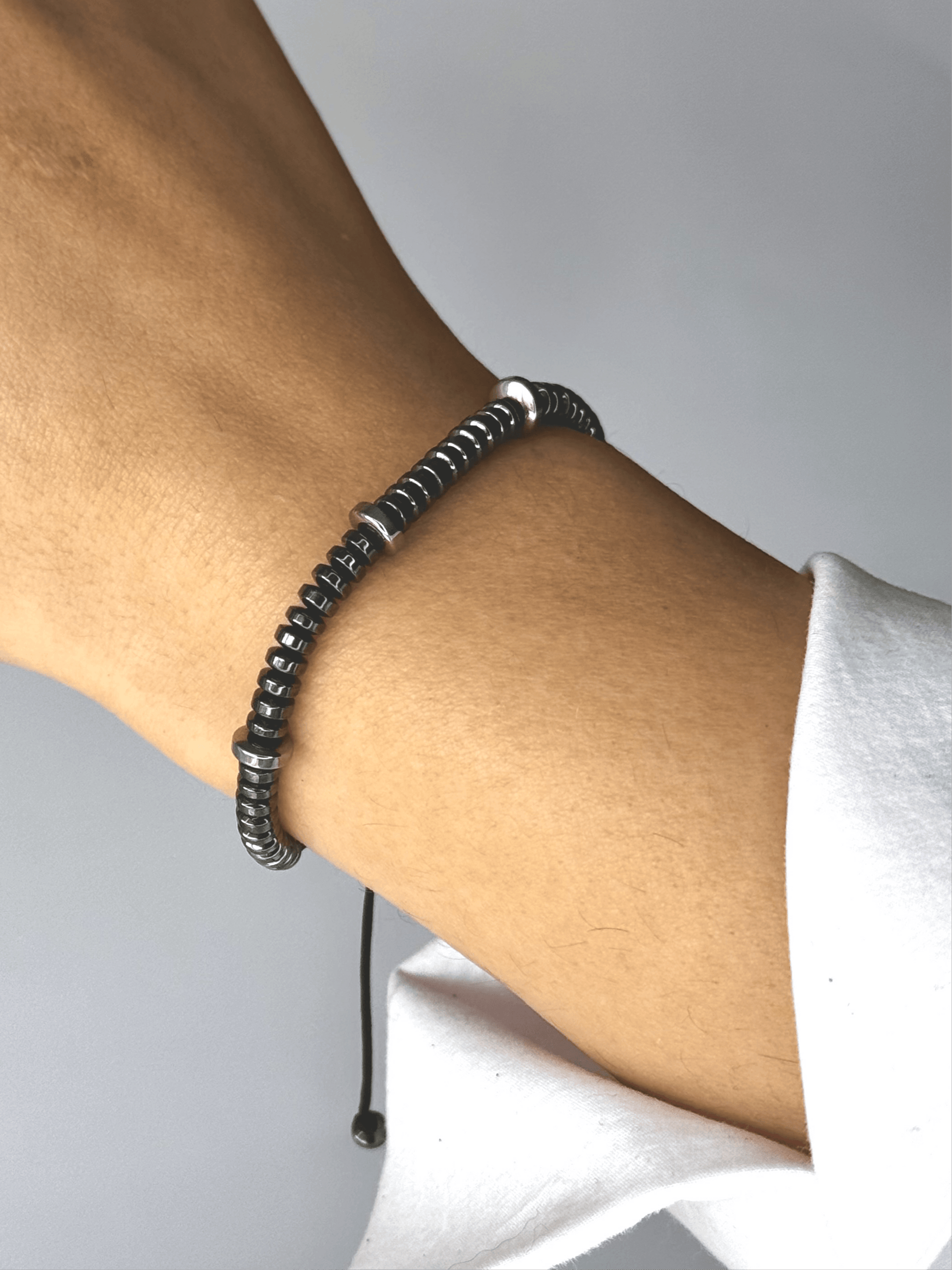 Must have bracelet that can be easily combined with others. Its size is adjustable. With hematite stones in silver color. It is resistant to water and perfumes. It does not tarnish. It does not fade.