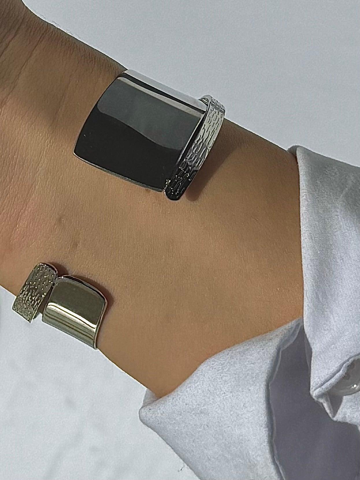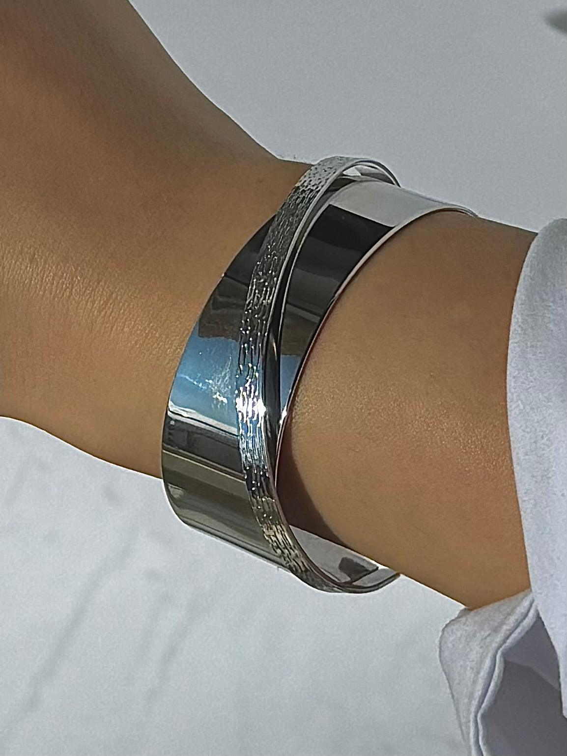 An impressive cuff that stands out. Opening and adjustable, it offers a comfortable fit while maintaining its majestic character. With its shiny and special design, it is the ultimate statement piece that attracts attention and highlights your self-confidence.